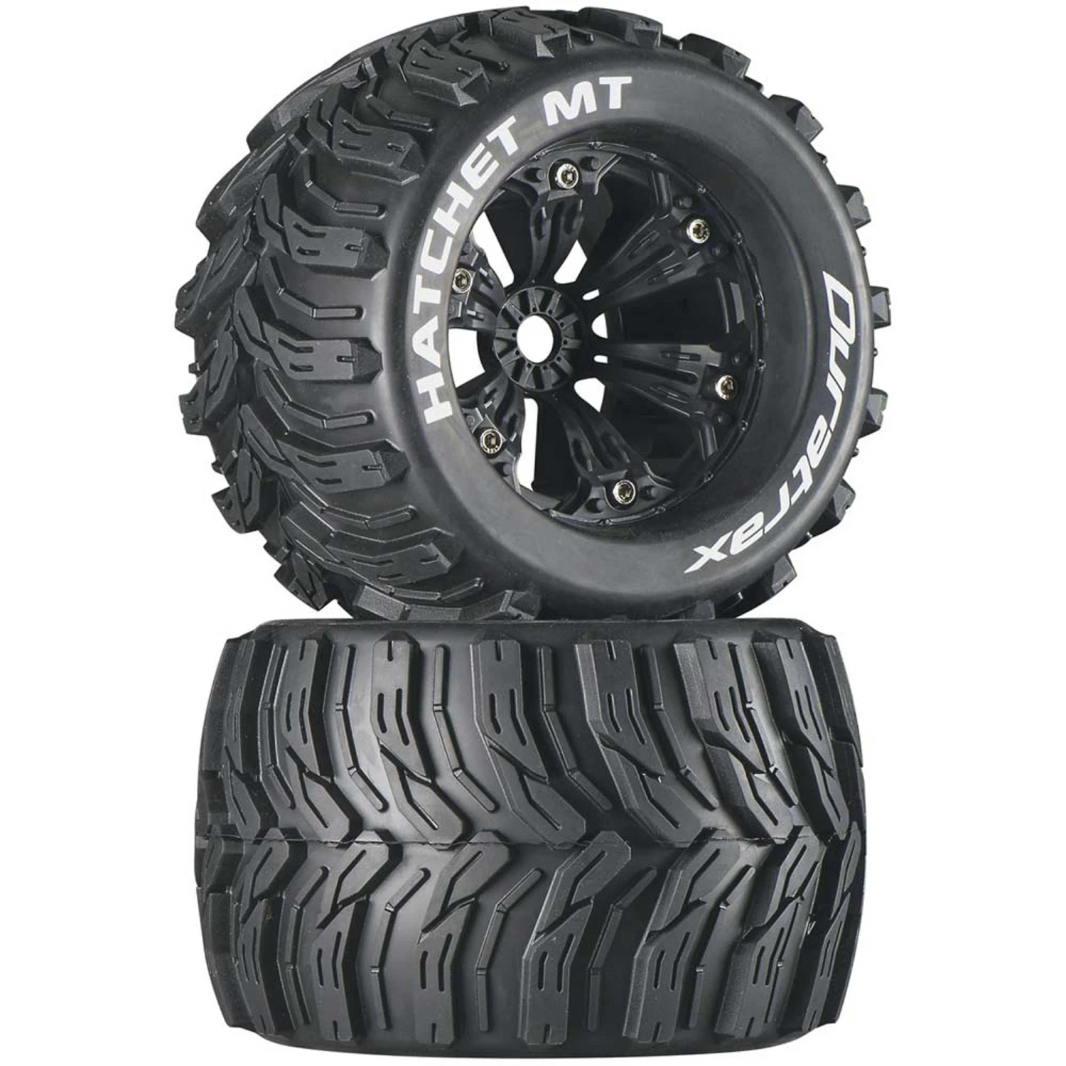 - “Hatchet MT” and “Duratrax” printed in white on sidewall