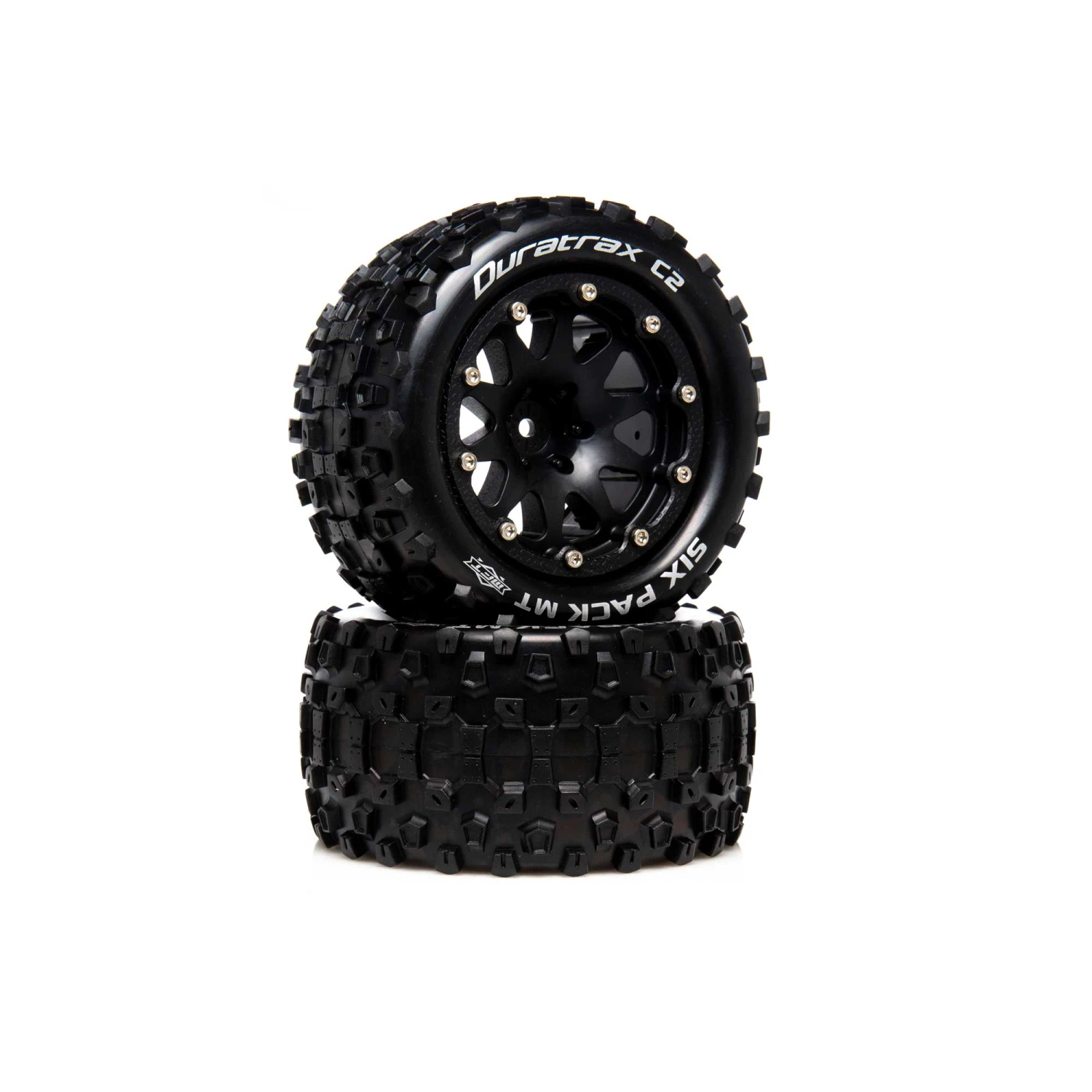 Duratrax Six Pack MT Belted 2.8″ Mounted Front/Rear Tires, 14mm Black (2) for Tires & Wheels